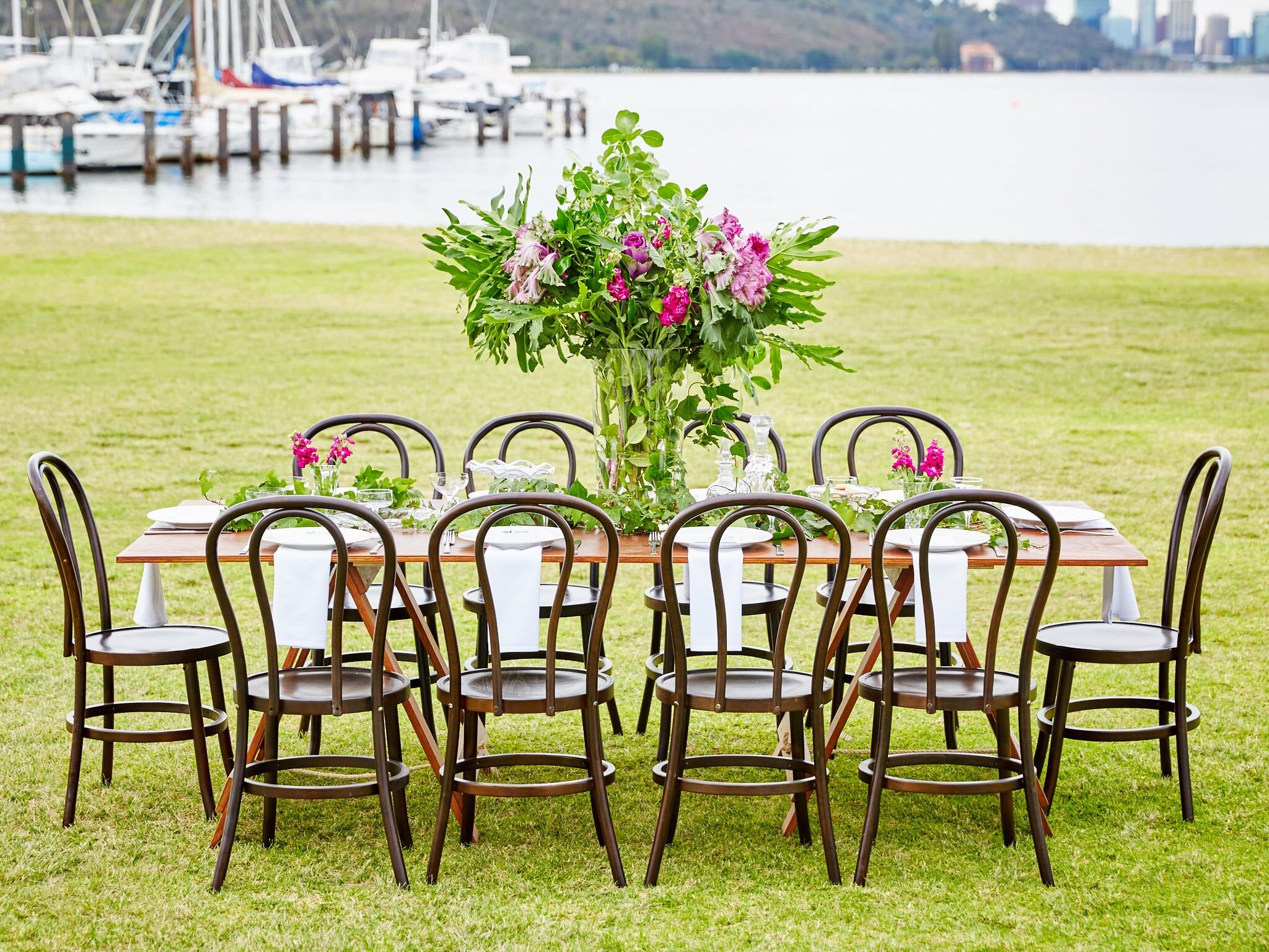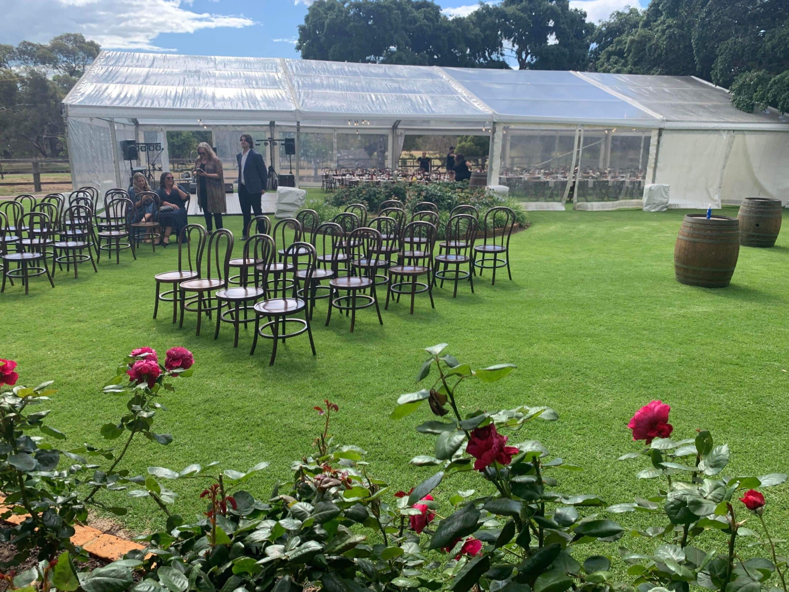 A natural timber Bentwood chair. Perfect for all marquee events, wedding ceremonies and receptions. Available in White and Brown These chairs are NOT available for pick up from the warehouse – They must be delivered. Please contact our office on 08 9250 2255 for availability and pricing.