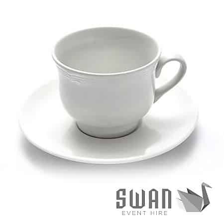 Ceramic tea cup and saucer with renaissance pattern. Ivory colour. Perfect for a High Teas.
