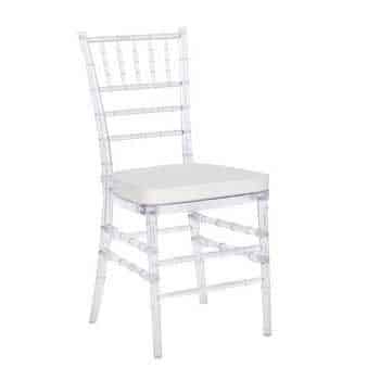A Clear Tiffany Chairs with white cushions are perfect for classic events. On trend but elegant and graceful, they complement almost any palette, style or theme. Various Colours Available: Gold, White, Walnut, Silver and Limewash. These chairs are NOT available for pick up from the warehouse – They must be delivered. Please contact our office on 08 9250 2255 for availability and pricing.